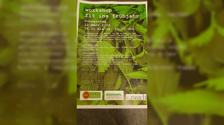 Im Biomarkt naturalia findet am Donnerstag, 12. März 2026, der Workshop „fit ins frühjahr“ statt. Sie erhalten praxisnahes Wissen zu Kräutern, basischer Ernährung und Impulsen für Stoffwechsel und Immunsystem. Im Workshop sind auch praktische Teile enthalten, zum Beispiel Verkostung, Teemischung, Spray-Herstellung und gemeinsames Kochen. Die Veranstaltung dauert von 16.30 Uhr bis ca. 20.00 Uhr und ist für eine kleine Gruppe geplant. Die Anmeldung läuft direkt über die Veranstalterin Regina Faessle, die Plätze sind begrenzt. Bitte melden Sie sich frühzeitig an.